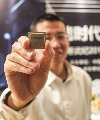 ??? 11月6日,中科院計算所研究員、寒武紀(jì)公司首席執(zhí)行官陳天石在展示寒武紀(jì)人工智能芯片。當(dāng)日,中國科學(xué)院孵化的寒武紀(jì)科技公司發(fā)布新一代人工智能芯片,采用與“阿爾法狗”類似的深度學(xué)習(xí)技術(shù),適用范圍覆蓋了圖像識別、安防監(jiān)控、智能駕駛、無人機(jī)、語音識別、自然語言處理等人工智能的重點應(yīng)用領(lǐng)域。記者 殷剛 攝 |