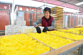 ??? 11月4日,河北省新河縣仁讓里鄉(xiāng)現(xiàn)代農(nóng)業(yè)園的工人在分揀準(zhǔn)備烘干的菊花。近年來,新河縣在推進(jìn)產(chǎn)業(yè)扶貧過程中,積極調(diào)整優(yōu)化農(nóng)業(yè)結(jié)構(gòu),采取“公司+基地+農(nóng)戶”的方式,引導(dǎo)農(nóng)民因地制宜發(fā)展特色菊花種植,并依托企業(yè)發(fā)展食用花茶加工,產(chǎn)品銷往北京、天津、山東等省區(qū)市,帶動2000多農(nóng)戶增收。記者 朱旭東 攝 |