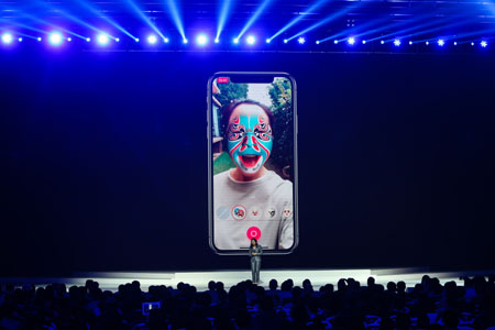 ??? 12月3日,蘋果全球副總裁、大中華區(qū)董事總經(jīng)理葛越演示一款可以實現(xiàn)變臉的軟件,以此為例介紹蘋果公司在增強(qiáng)現(xiàn)實領(lǐng)域的技術(shù)。當(dāng)日,第四屆世界互聯(lián)網(wǎng)大會世界互聯(lián)網(wǎng)領(lǐng)先科技成果發(fā)布活動在浙江烏鎮(zhèn)舉行。記者 鄭煥松 攝