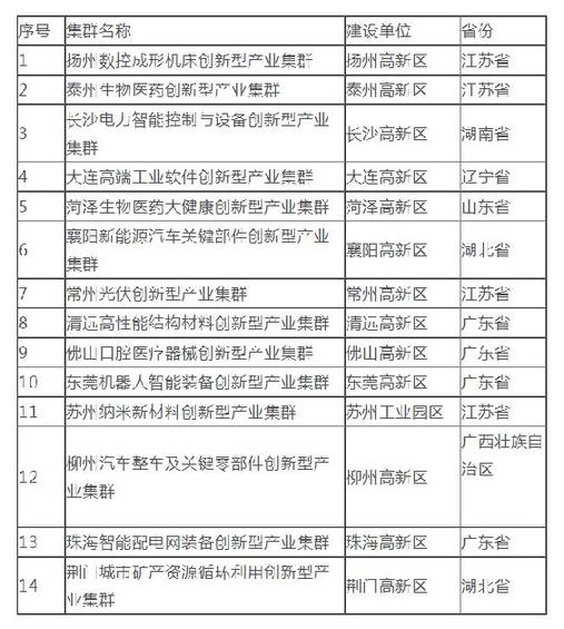 據(jù)科技部網站消息,科技部近日印發(fā)關于開展第三批創(chuàng)新型產業(yè)集群試點的通知。通知指出,根據(jù)《創(chuàng)新型產業(yè)集群試點認定管理辦法》(國科發(fā)火〔2013〕230號),經審核,現(xiàn)將揚州數(shù)控成形機床等29個產業(yè)集群納入第三批創(chuàng)新型產業(yè)集群試點名單。
