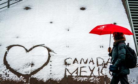 ??? 12月11日,在德國(guó)漢堡,一名女子撐傘走在雪后的路上。新華社/歐新
