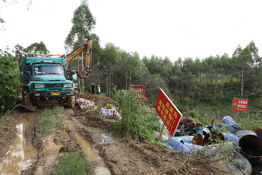 經(jīng)查,嫌疑人在利益的驅(qū)使下,自今年2月起從廣東江門市偷運(yùn)含鎳危險(xiǎn)物品到藤縣進(jìn)行傾倒。