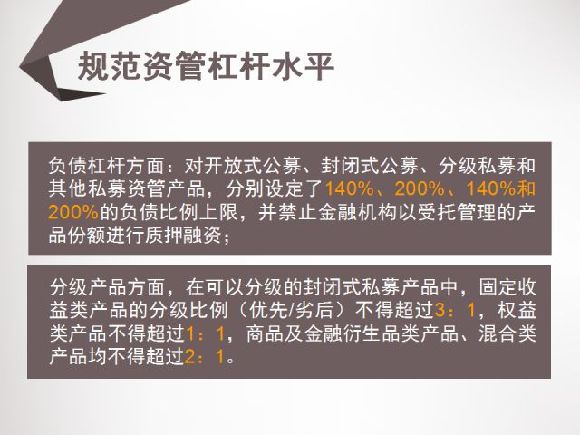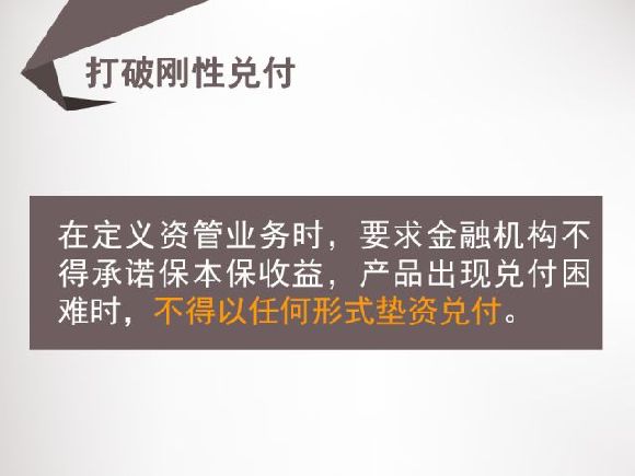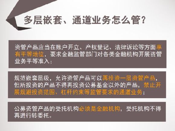 該負(fù)責(zé)人說(shuō),資管新規(guī)的總體思路是按照資管產(chǎn)品的類型制定統(tǒng)一的監(jiān)管標(biāo)準(zhǔn),對(duì)同類資管業(yè)務(wù)作出一致性規(guī)定,實(shí)行公平的市場(chǎng)準(zhǔn)入和監(jiān)管,最大程度地消除監(jiān)管套利空間,為資管業(yè)務(wù)健康發(fā)展創(chuàng)造良好的制度環(huán)境。