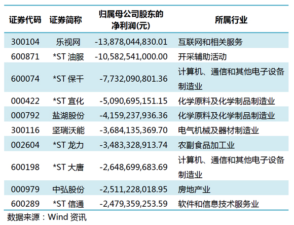 在虧損最多的十家公司中,“帶帽”的依舊不在少數(shù),但在周期股“逆襲”之后,傳媒、新能源汽車、鋰電池、通信等近年大熱行業(yè)公司不幸上榜。