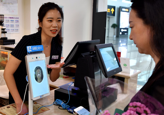 近日,鄭州新鄭國際機場T2航站樓內(nèi)的首批商戶開通了刷臉支付服務(wù)。顧客在購物APP里開通刷臉支付功能后,付款時只需將臉對準攝像頭,即可完成支付。整個支付過程無需輸入密碼,更加智能便捷。記者 李嘉南 攝