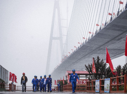 楊泗港長江大橋是目前世界上最大跨度雙層公路懸索橋。站在橋上,很難想象到這座主跨1700多米長、一跨過長江的雙層特大橋,以往需要一年多的橋面結(jié)構(gòu)建設(shè)工期,如今已縮短至44天。