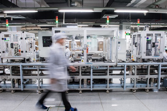 深圳海能達通信股份有限公司工廠的自動化生產線。記者 毛思倩 攝