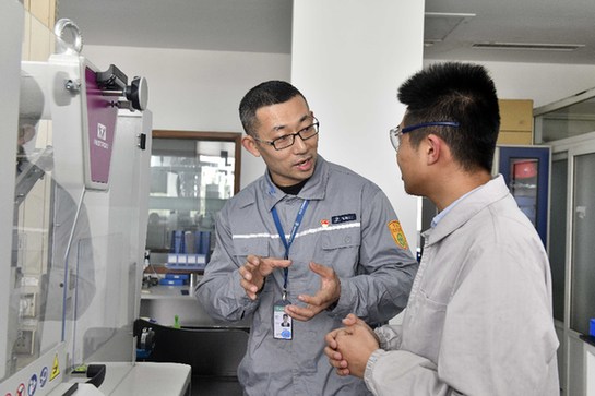 在煙臺(tái)萬華化學(xué)集團(tuán)中央研究院,工作人員在做聚丙烯材料擺錘沖擊試驗(yàn)。資料照片