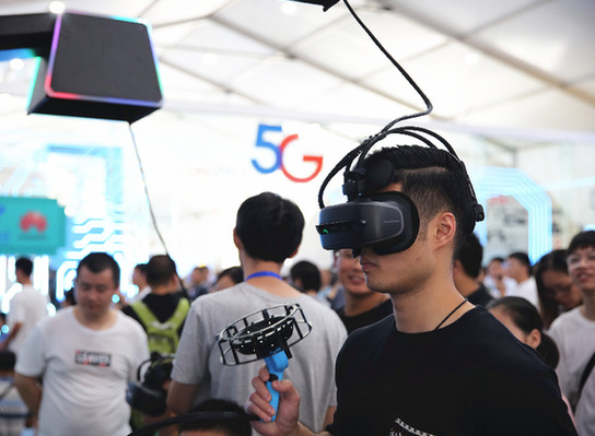 2019物聯(lián)網(wǎng)應(yīng)用和產(chǎn)品展上現(xiàn)場(chǎng)觀眾體驗(yàn)5G設(shè)備。蔣慶寅 攝