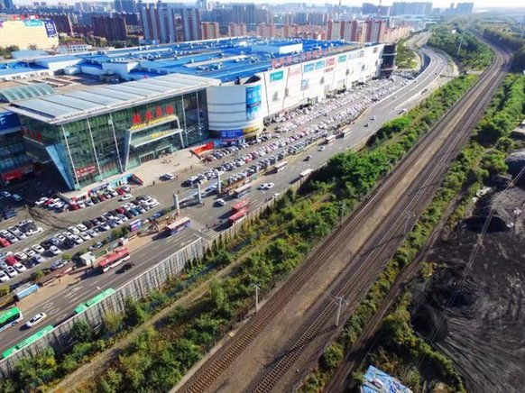乘高鐵從山海關站始發(fā)約3小時50分鐘后,透過車窗能看到一座形似航母的巨型白色建筑——這是歐亞集團的龍頭旗艦店,長春的城市地標之一,以其60萬平方米的建筑面積被稱為“世界最大單體店”。