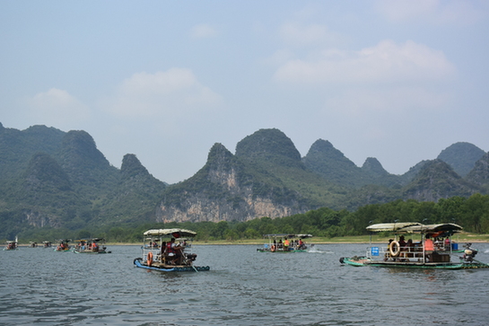 桂林市漓江岸邊的村民在從事竹筏旅游業(yè)。記者 董振國 攝
