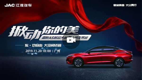 江淮嘉悅A5粉絲大會(huì)暨上市發(fā)布會(huì)于2019年11月20日18:00在廣州舉行。