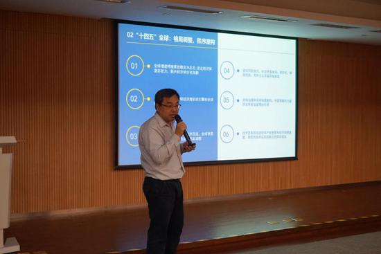 之后,浙江清華長三角研究院產(chǎn)城融合研究中心主任陳偉就“十四五”宏觀經(jīng)濟(jì)形勢以及長三角一體化戰(zhàn)略為主題內(nèi)容進(jìn)行分享。內(nèi)容圍繞“十四五”宏觀形勢研判和十個“關(guān)注點(diǎn)”的解答兩方面展開,深入分析了“十四五”及“兩個一百年”的歷史大背景下,全球經(jīng)濟(jì)格局調(diào)整、秩序重構(gòu),中國經(jīng)濟(jì)進(jìn)入“新常態(tài)”,經(jīng)濟(jì)發(fā)展邁入“5”時代,市場消費(fèi)結(jié)構(gòu)發(fā)生深刻變化,產(chǎn)業(yè)創(chuàng)新整體穩(wěn)步提升、局部重點(diǎn)突破,國企統(tǒng)籌逐步強(qiáng)化,監(jiān)管漸趨靈活的新趨勢。