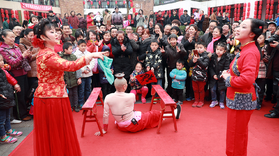近年來,瀘州市江陽區(qū)為大力弘揚社會主義核心價值觀,鞏固全國文明城市成果,不斷豐富社區(qū)黨員群眾的精神文化生活。圖為在江陽區(qū)張壩景區(qū)開展“三下鄉(xiāng)”文藝活動。