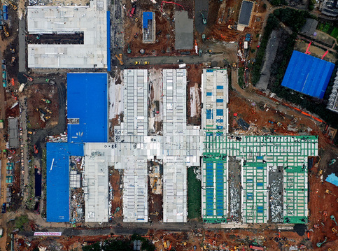 在武漢火神山、雷神山醫(yī)院建設(shè)中,基于北斗衛(wèi)星導(dǎo)航系統(tǒng)的高精度定位設(shè)備火速馳援,確保工地大部分放線測量一次完成。這是無人機(jī)拍攝的武漢火神山醫(yī)院。記者 李賀 攝