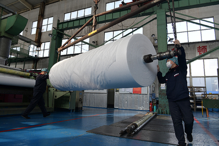 走進(jìn)位于山東省東營市的山東俊富無紡布有限公司(以下簡(jiǎn)稱山東俊富)廠區(qū),記者看到一派繁忙景象。據(jù)悉,從1月27日接到工信部通知后他們就一直加班,全部10條生產(chǎn)線24小時(shí)滿負(fù)荷生產(chǎn)。山東俊富生產(chǎn)的熔噴布日產(chǎn)量約13噸,占全國1/10,根據(jù)國家和有關(guān)部門調(diào)度,主要供給湖北和山東的下游企業(yè)。