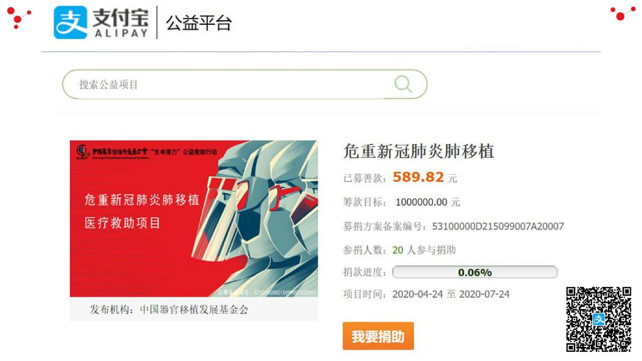 支付寶公益上線高選擇性、高防護(hù)性危重癥新冠肺炎肺移植醫(yī)療救助項(xiàng)目