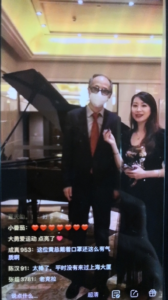 上海大廈負(fù)責(zé)人(左)介紹與飯店同齡的鋼琴