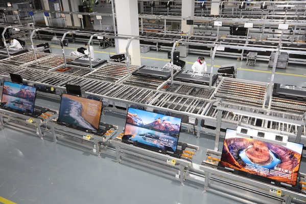 “工業(yè)生產(chǎn)的環(huán)節(jié)多、程序復(fù)雜,5G網(wǎng)絡(luò)具有部署靈活、高可靠高安全、大帶寬、低時(shí)延、海量連接等特點(diǎn),使得工業(yè)機(jī)器人、機(jī)器視覺(jué)、邊緣計(jì)算等5G與工業(yè)互聯(lián)網(wǎng)技術(shù)在生產(chǎn)中廣泛運(yùn)用,效率提升60%以上?!遍L(zhǎng)虹智能制造有限公司相關(guān)負(fù)責(zé)人表示。記者了解到,在智能制造產(chǎn)業(yè)園內(nèi),相同數(shù)量工人的年產(chǎn)量可提升3倍,一臺(tái)電視機(jī)從客戶下單到交貨只需24天。