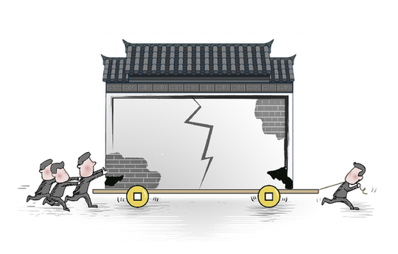 古建筑承載著歷史文化信息,被異地搬遷、重新拆建后,不僅改變了原有風(fēng)貌,也斬?cái)嗔藲v史文化傳承。而村民通過賣房致富又會(huì)形成攀比之風(fēng),造成販賣老屋的惡性循環(huán),一定程度上加速了古建筑的消亡。保護(hù)古建,守護(hù)文化傳承亟待斬?cái)嗷疑骀湣?/p>