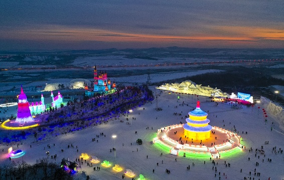 無人機拍攝的長春冰雪新天地主題冰雪樂園。記者 許暢 攝