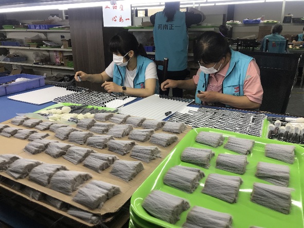 5月19日,工人在河南鹿邑一家化妝刷企業(yè)生產(chǎn)車(chē)間忙碌。記者 張興軍 攝