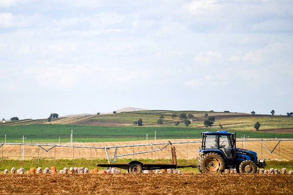 一輛農(nóng)用車行駛在內(nèi)蒙古自治區(qū)呼和浩特市武川縣上禿亥鄉(xiāng)廠漢木臺村的土豆田間。記者 貝赫 攝