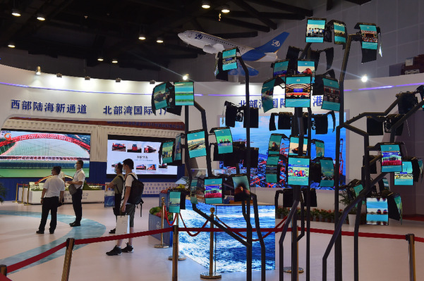 ????這是9月12日在廣西南寧國際會(huì)展中心拍攝的西部陸海新通道展區(qū)。新華社記者 劉嶺逸 攝