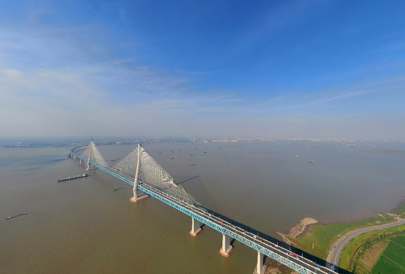 這是2021年8月31日拍攝的滬蘇通長江公鐵大橋(無人機照片)。新華社發(fā)(許叢軍 攝)