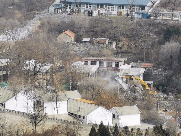 1月14日,濟南南部山區(qū)管委會組織專門力量對位于天井峪村的新建民宿項目進行拆除。