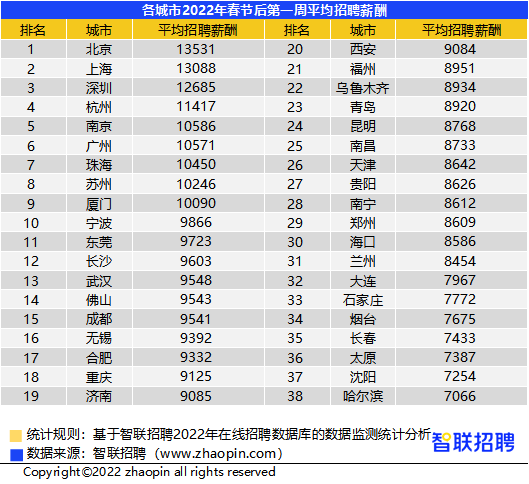 平均招聘薪酬10088元/月 北上深杭居前四