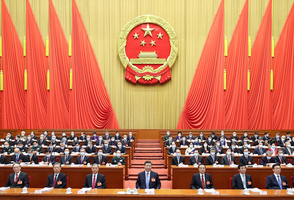 習(xí)近平、李克強、汪洋、王滬寧、趙樂際、韓正、王岐山和大會主席團(tuán)成員在主席臺就座。
