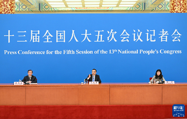 3月11日上午,十三屆全國人大五次會議在北京人民大會堂舉行記者會,國務(wù)院總理李克強應(yīng)大會發(fā)言人張業(yè)遂的邀請出席記者會,并回答中外記者提問。新華社記者 李鑫 攝