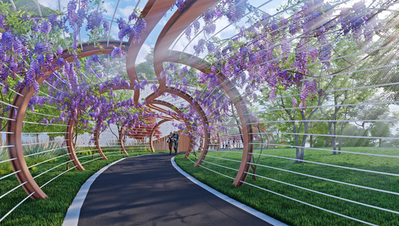(新建紫藤長廊,盛花期將欣賞到迷人的“紫色瀑布”)