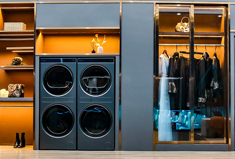 就拿洗衣機來說,如今市面上已經(jīng)出現(xiàn)了不少洗衣機和干衣機的疊放組合產(chǎn)品,但機身高度幾乎都超出170cm,亞洲的女性用戶往往需要抬手過肩甚至踮腳才能取放衣物,非常不便。針對這個問題,海爾智家設(shè)計出整機高度僅為150cm的卡薩帝中子和美洗干護理機,不僅洗、護、烘一步到位,還能完美適配亞洲女性用戶的身高。外觀設(shè)計也更加簡潔純粹,整機采用一體式的金屬前板,輕輕推彈即可實現(xiàn)筒門開合,智能投放分配器也巧妙地隱藏到了上下筒中間。
