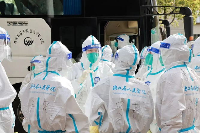 ????8點剛過,4輛掛著“浙江省援滬醫(yī)療隊”標(biāo)牌的大巴駛?cè)牒鐦蜴?zhèn),100名來自杭州市中醫(yī)院的醫(yī)護(hù)人員隨車來到閔行,將進(jìn)入虹橋各社區(qū)開展工作。