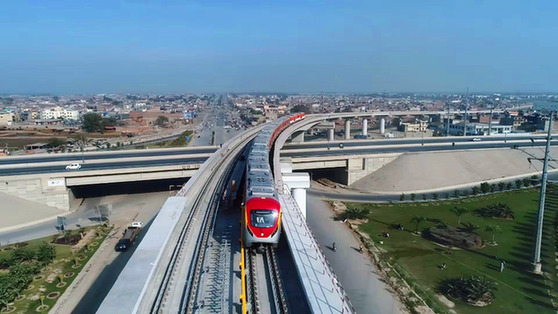 圖為由兵器工業(yè)集團(tuán)北方公司聯(lián)合承建的巴基斯坦拉合爾軌道交通橙線項(xiàng)目運(yùn)營(yíng)通車?!×险掌?/font>