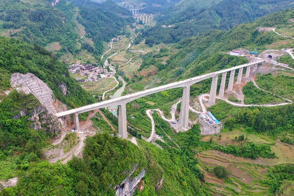 這是建設(shè)中的貴南高鐵桐子園雙線特大橋(無人機照片)。5月16日,在位于貴州省貴定縣境內(nèi)的貴南高鐵建設(shè)施工現(xiàn)場,中鐵廣州局建設(shè)者們正加緊施工,為貴南高鐵早日建成通車而努力。貴南高鐵是我國“八縱八橫”高速鐵路主通道包頭至??谕ǖ赖闹匾M成部分,設(shè)計時速350公里。