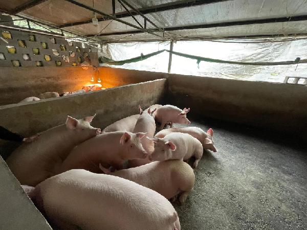 左圖為重慶市黔江區(qū)種豬養(yǎng)殖戶黃啟全豬場(chǎng)內(nèi)存欄的仔豬。