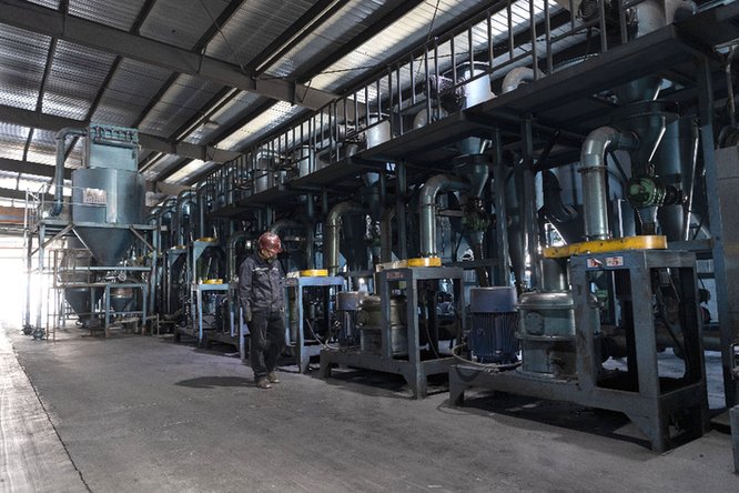 在雞西市恒山區(qū)一石墨深加工企業(yè)廠區(qū),工人在車(chē)間巡檢。新華社記者 謝劍飛 攝