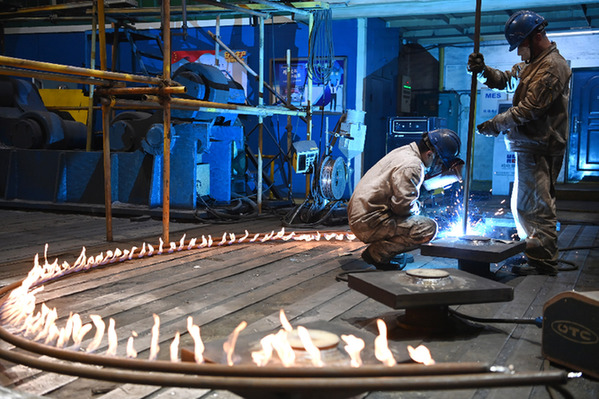 電焊工在哈電電機公司冷作分廠作業(yè)。記者 王建威 攝
