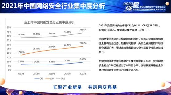 報告指出,當(dāng)網(wǎng)絡(luò)安全市場進(jìn)入穩(wěn)健增長階段后,頭部企業(yè)在規(guī)模和資源上擁有明顯優(yōu)勢。隨著時間推移,頭部企業(yè)擁有的市場份額會逐漸擴(kuò)大,預(yù)計未來我國網(wǎng)絡(luò)安全市場集中度將會持續(xù)提升。