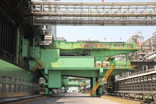 太重集團研制的推焦車正在晉南鋼鐵集團執(zhí)行推焦任務。資料照片
