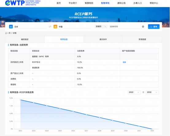 據(jù)了解到,屆時(shí),企業(yè)只需要登陸eWTP官網(wǎng),通過“智慧享稅”欄目即可查詢輸入原產(chǎn)地、出口國和出口商品的HS編碼,就會顯示RCEP和其他貿(mào)易協(xié)定對于該商品的稅率規(guī)定,系統(tǒng)將會推薦最優(yōu)惠稅率;企業(yè)還可查詢相關(guān)原產(chǎn)地規(guī)則,便于企業(yè)了解協(xié)定享惠要求。