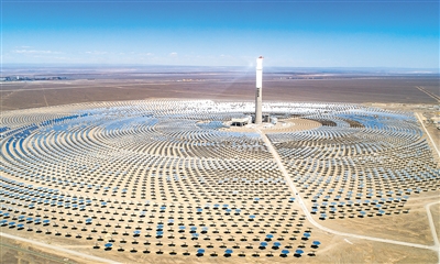 中國能建投資建設的哈密50兆瓦熔鹽塔式光熱發(fā)電項目。資料照片