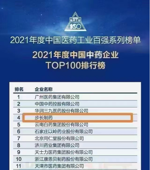 2022年7月12日-15日,“米思會(中國醫(yī)藥健康產(chǎn)業(yè)共生大會)在浙江湖州舉行,萬眾矚目的2021年中國醫(yī)藥工業(yè)百強系列榜單在會議上揭曉。步長制藥憑借扎實的研發(fā)生產(chǎn)實力及專業(yè)學術(shù)推廣能力榮登“中國中藥企業(yè)TOP100排行榜”第四,位列民營企業(yè)第一。