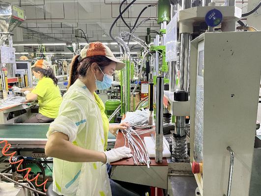 桐梓縣“重慶工業(yè)園”重點(diǎn)承接成渝轉(zhuǎn)移的產(chǎn)業(yè),圖為工人正在生產(chǎn)車間里忙碌。新華社記者 李驚亞 攝