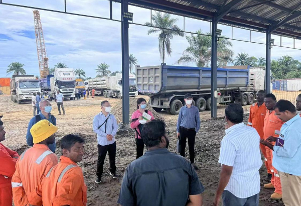 ??東風(fēng)人員在尼日利亞CNG牽引車工地現(xiàn)場與客戶交流