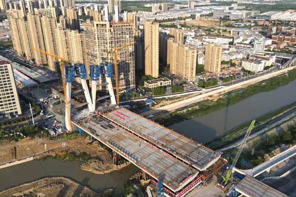 當(dāng)日,由中鐵四局承建的引江濟(jì)淮工程江淮溝通段金寨南路橋主橋貫通。該橋跨越引江濟(jì)淮工程航道,全長635米,主橋長257米,設(shè)計為獨塔斜拉橋。引江濟(jì)淮工程溝通長江、淮河兩大水系,是我國跨流域、跨省重大戰(zhàn)略性水資源配置和綜合利用工程。