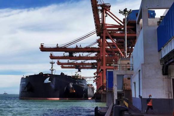 近日,承載廣西供應(yīng)鏈服務(wù)集團進(jìn)口的5.72萬噸菲律賓鎳礦的貨輪,靠泊在山東嵐橋港并卸貨。資料照片